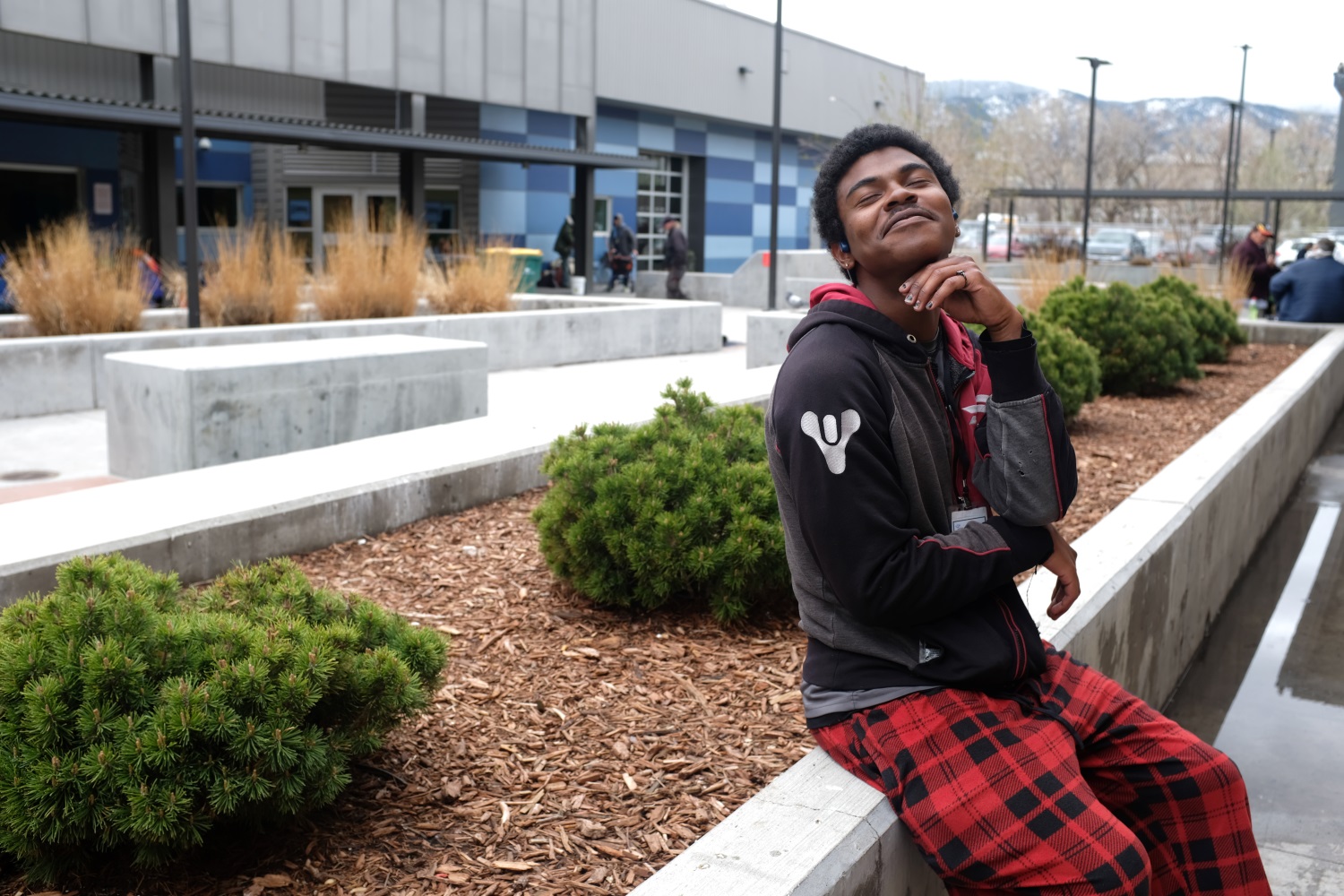 Samuel Melina sits outside Springs Rescue Mission. (Zach Ben-Atmos/Rocky Mountain PBS)