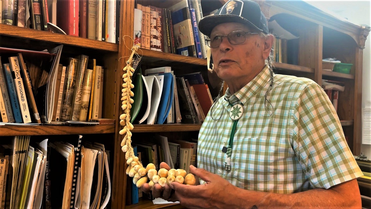Rick Williams shows the timpsala, or turnips, that were a part of Lakota diets.