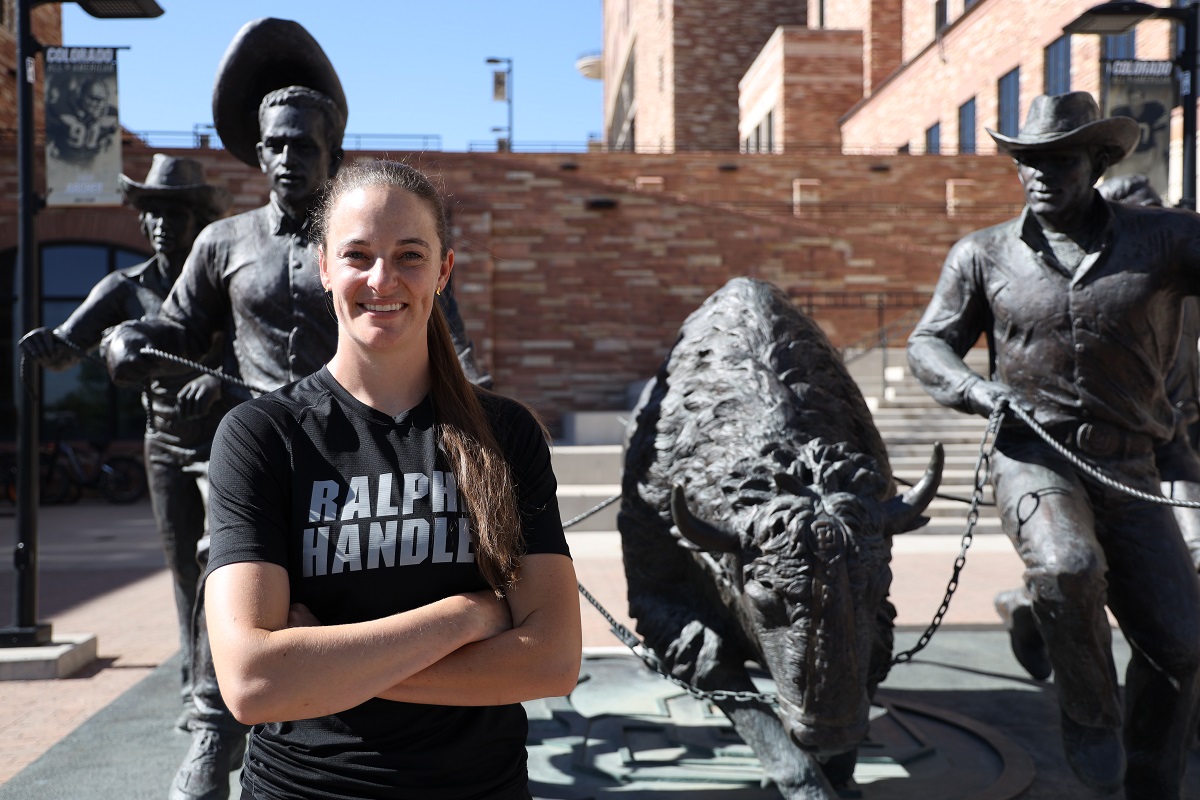 “The crowd is crescendoing up to a huge roar. And then the buffalo runs and you get to run out behind her and the crowd goes wild," Taylor Stratton, the Ralphie Live Mascot program manager. "And so you can't get that anywhere else, that's just here,” she said of the moment handlers run out on Folsom Field with Ralphie, a buffalo and live mascot for the University of Colorado, Boulder (CU).